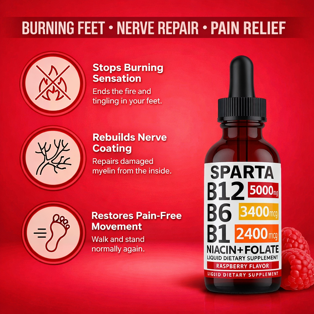 After 50, myelin coating breaks down. Nerves get exposed. That's the burning at night. To rebuild it, you need 5,000mcg active B12 plus four other B vitamins. Without all five, repair stalls. Sparta delivers 5,000mcg methylcobalamin + the complete 5-in-1 stack.